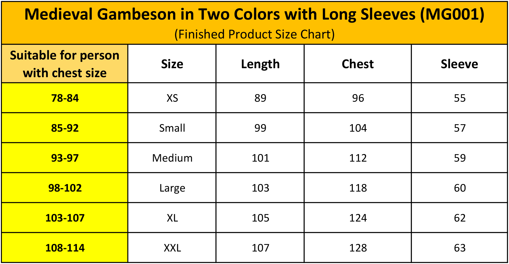 This long sleeves medieval gambeson offers a great fit for everyone and it is available in all sizes from XS to XXL. This gambeson comes in natural cotton colors with the inner lining color changing depending on availability and making each gambeson unique in its style. All straight bottom gambeson are crafted carefully that maintain the authenticity of historical time and there may be slight differences in every gambeson which adding to its special charm. Perfect for historical reenactments, LARP events or adding to your collection then this dual tone gambeson is a reliable and authentic choice for any medieval fan.