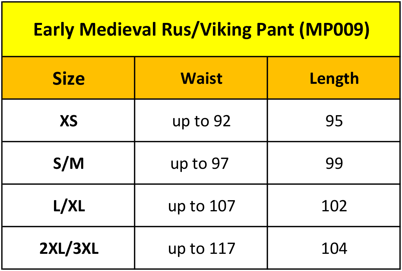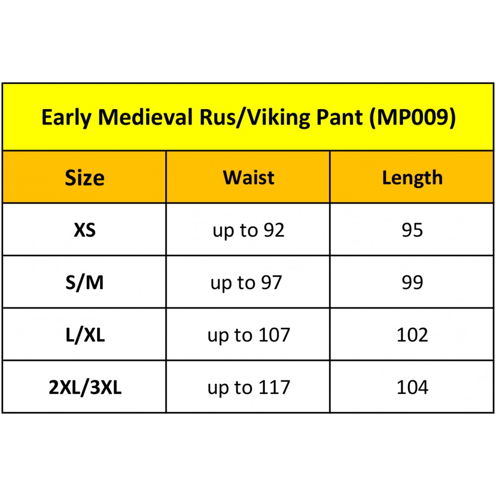 Early Viking Pant were probably adopted from the Rus living in today’s Eastern Europe and Russia. But they spread even to England. The Rus trousers are verifiable between the 8th & 11th century, its mostly used by the Varangians, a Swedish term for vikings in the East. The quantity of fabric is good to indicator of the affluence of the owner , Wearing these pants is quite comfortable. Despite the fact that we called these trousers "viking trousers," they work well for characters from a wide range of historical periods.