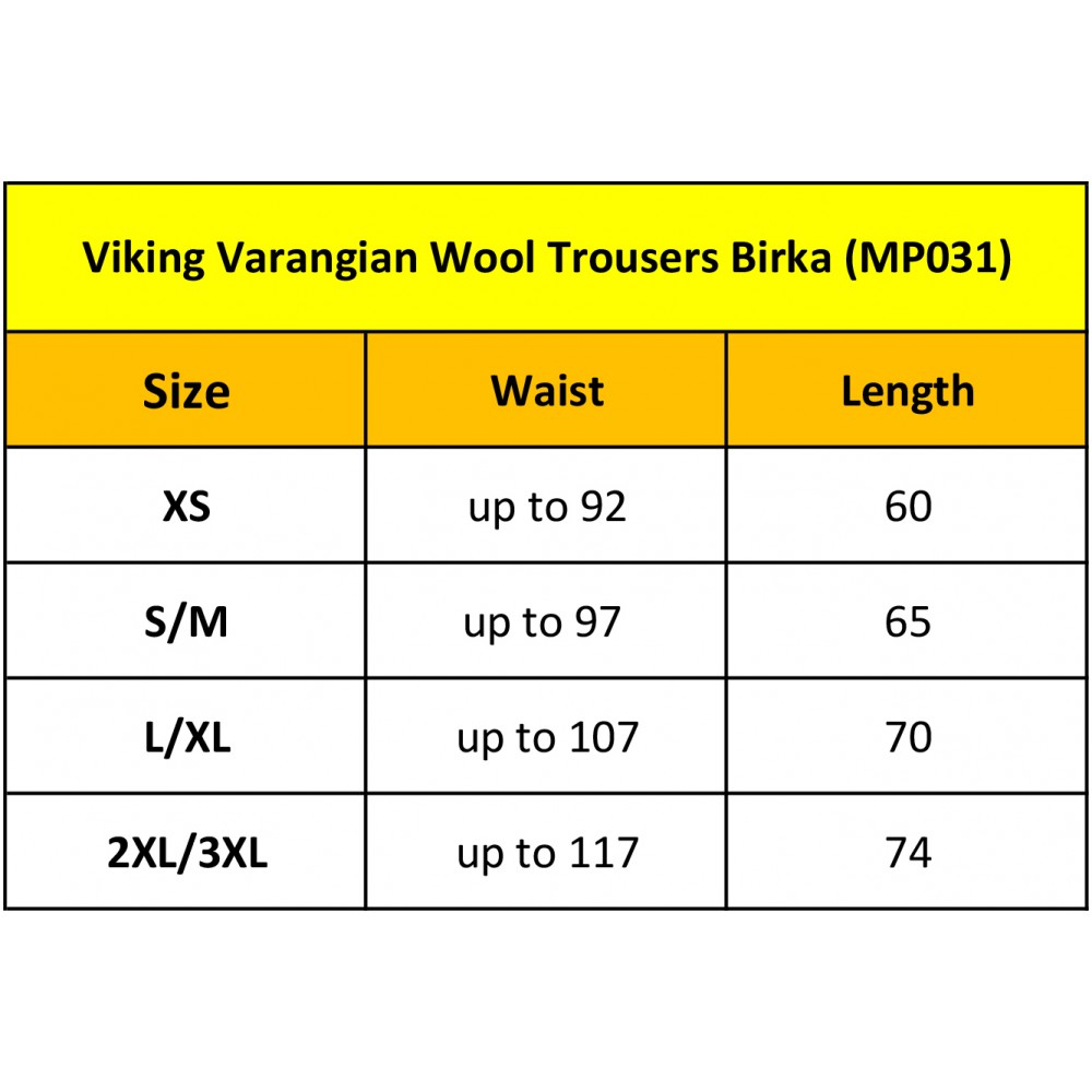 Woolen viking pants, an identical replica of pants discovered in Birka, Sweden, were mostly worn by Swedish vikings known as Varangians in the East. The amount of woolen cloth utilized tells us something about the owner's affluence. Wearing these pants is quite comfortable.