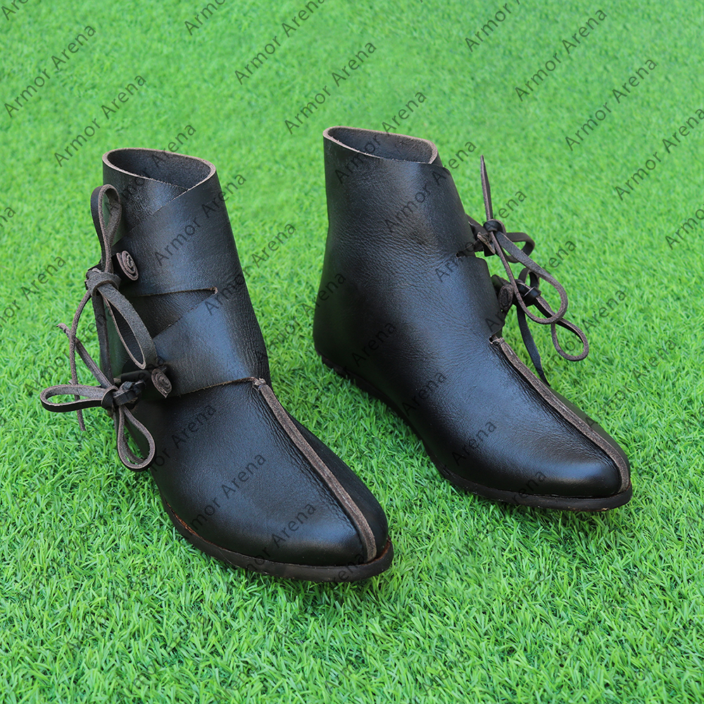 These leather string boots are available in all UK sizes from 4 to 15 and all are suitable for both who want men and women. If you want these shoes for kids, we have custom sizes for kids available on request. These medieval age shoes come in a different colors including black, natural, brown, dark brown, chocolate brown, red, green, and blue so you can pick a color that matches your style or costume. Whether you are recreating history or joining a LARP event or dressing up for Halloween then these medieval age leather shoes offer the perfect mix of authenticity, comfort and customization.