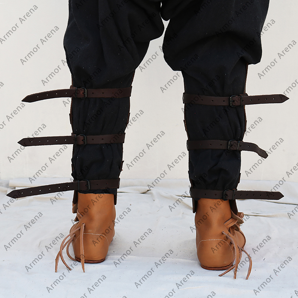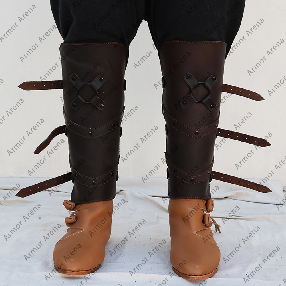 This leather leg greaves is easy to put on and can be adjusted to the leather straps and solid buckles. Tighten able for a snug fit so that it does not shift during action. Such comfort can be afforded while wearing it for hours in combat or a festival just to display your attire. Each piece of armor is handmade with care using natural cowhide leather that will only look even better with age. It will develop that beautiful worn with time and rugged look that makes it a real warrior’s armory. The combination of dark leather gives this armor a daring eye-catching style that makes heads turn in any crowd.