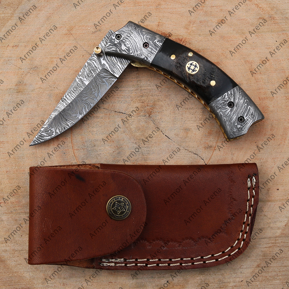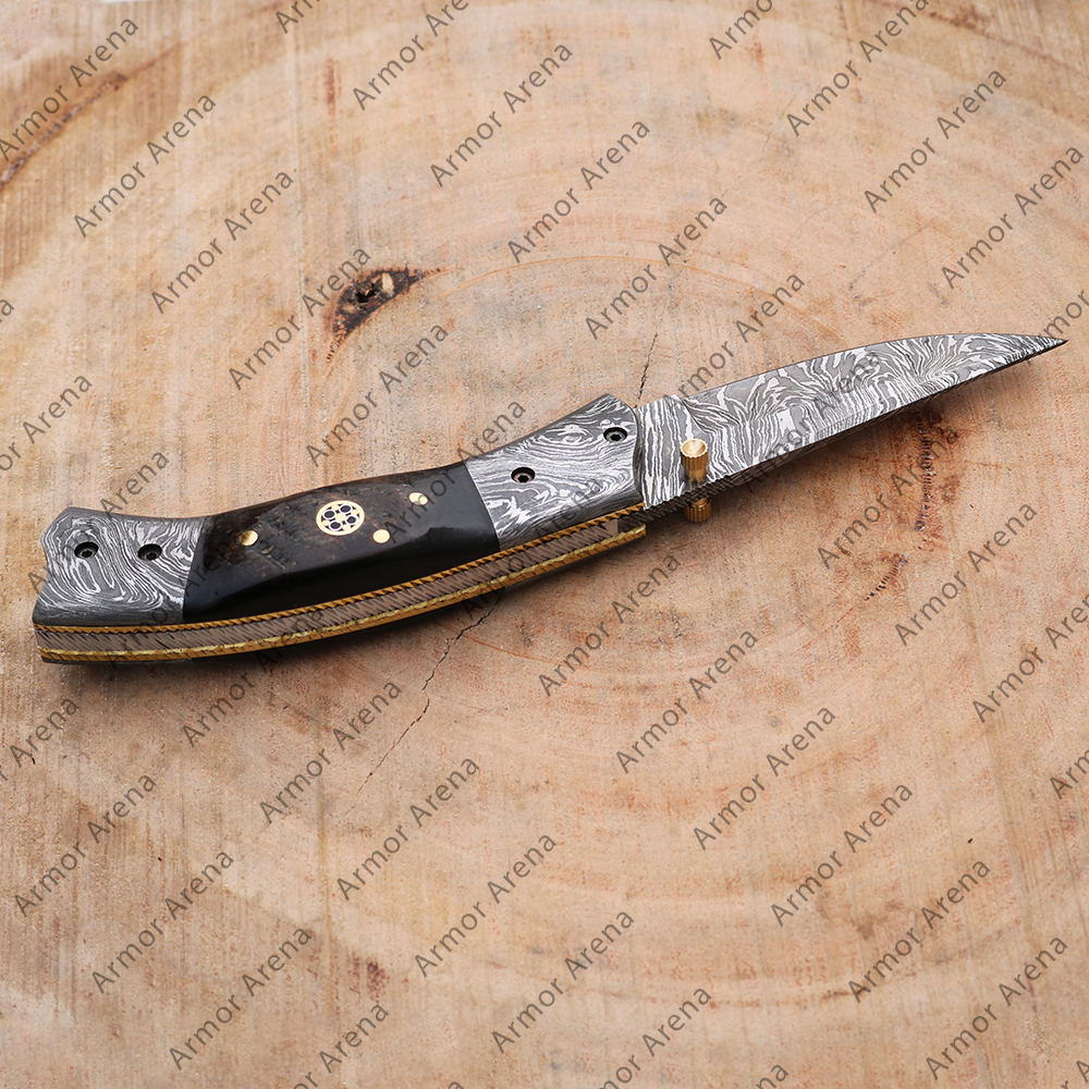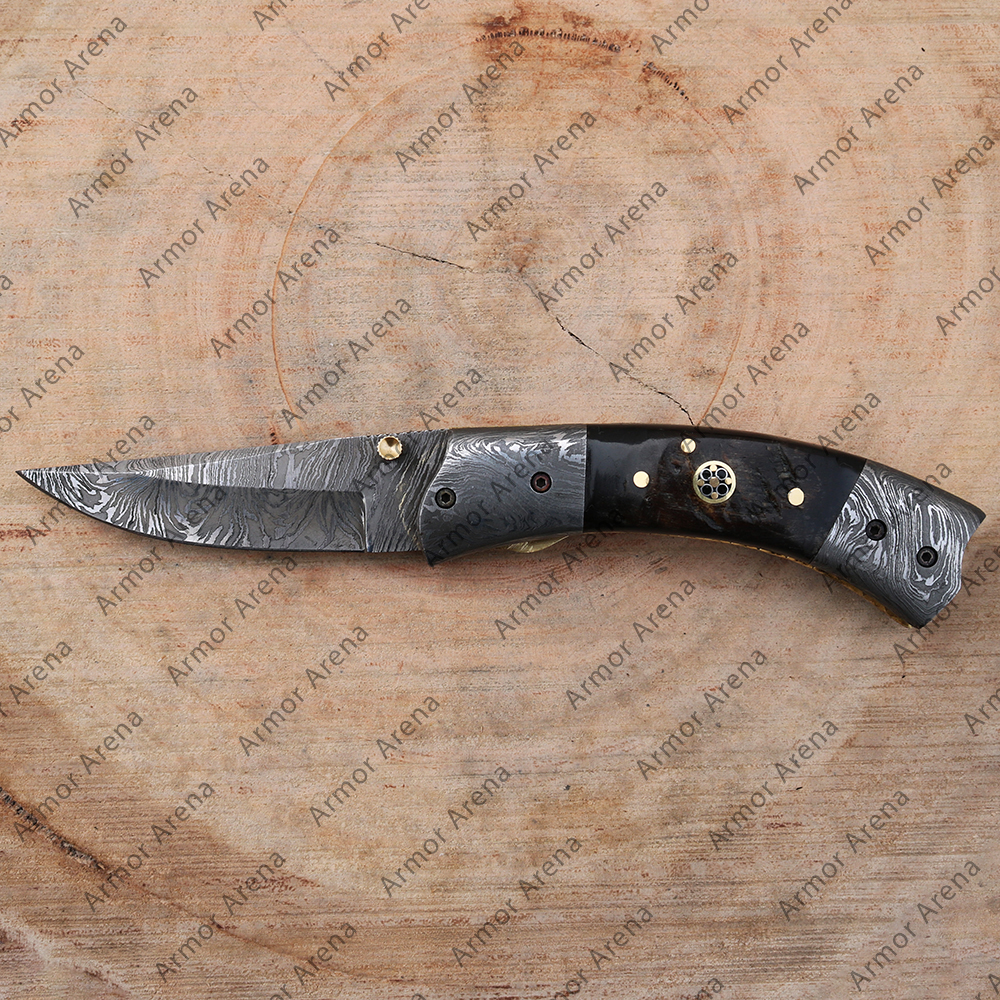 Handle Material: Damascus Steel with Animal Horn & Mosaic pin