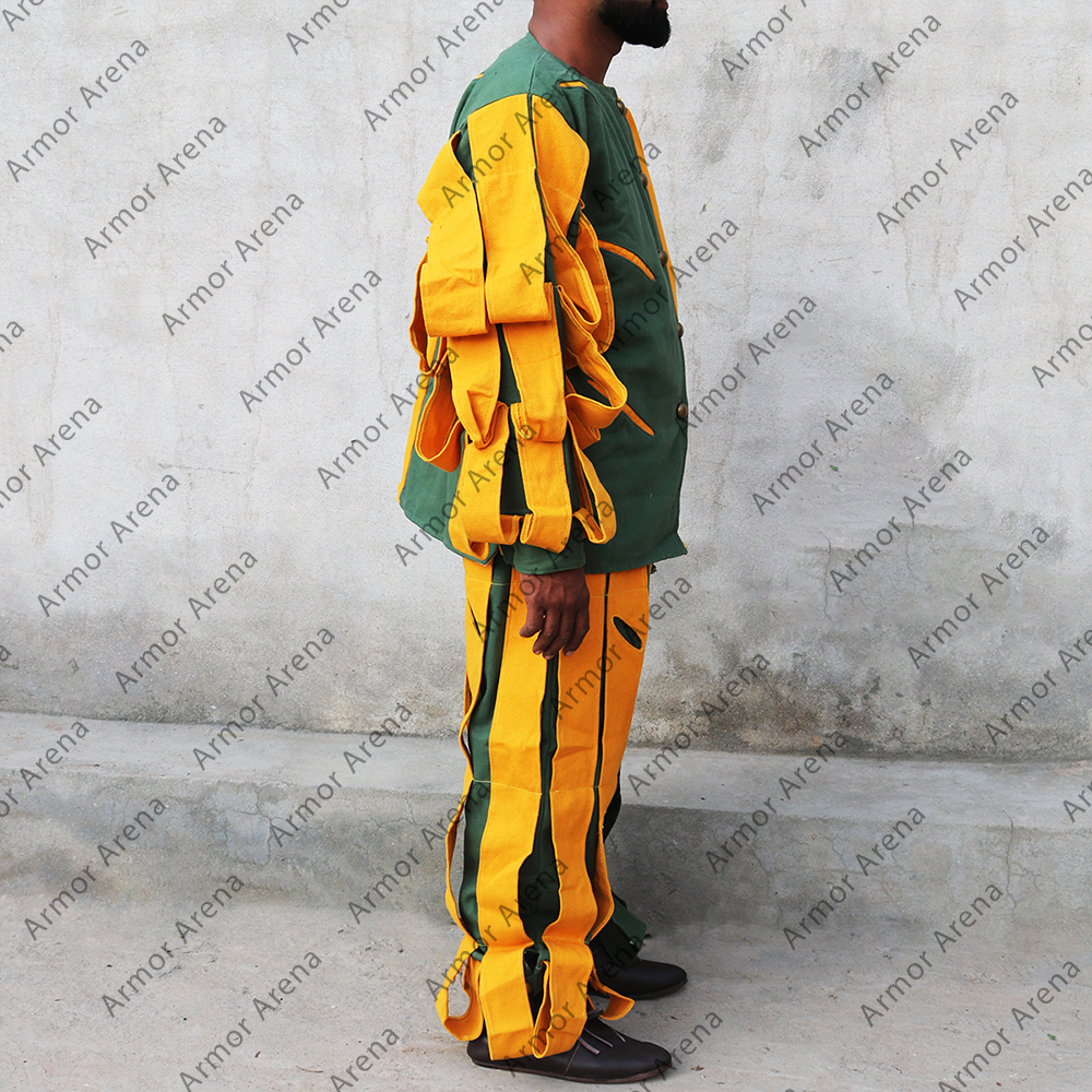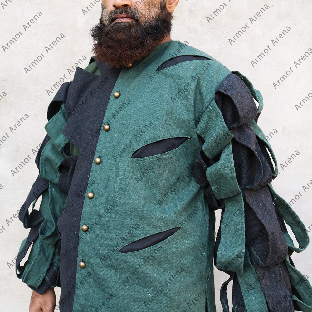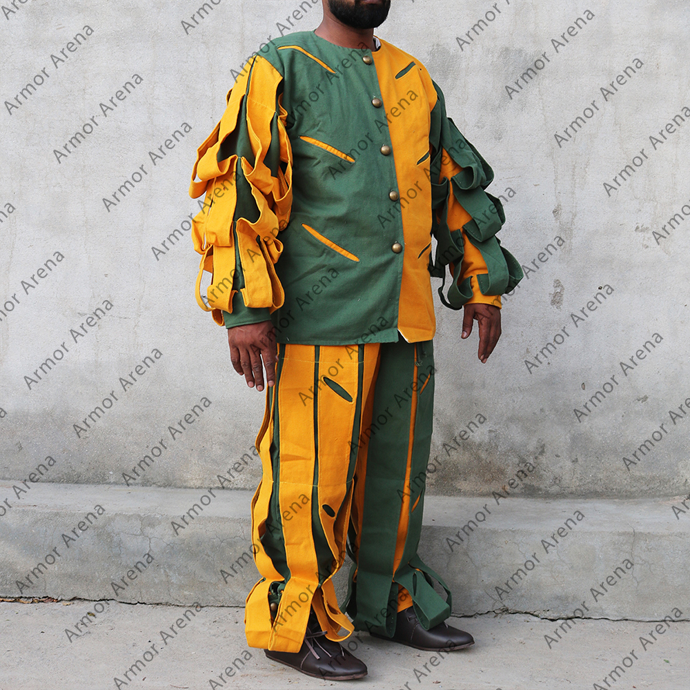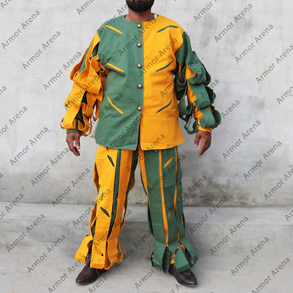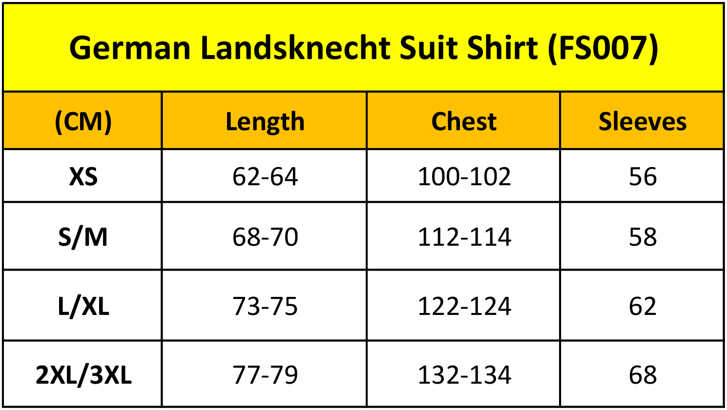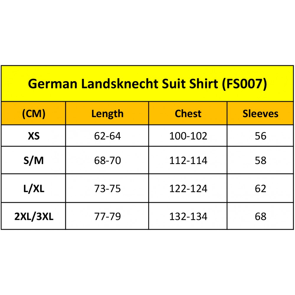 The German Landsknecht Suit is made with 100% cotton canvas material using 2 different colors. The cotton canvas fabric provide the durability and authenticity. This German landsknecht doublet have front closing and is designed to wear easily and provide comfort. Medieval German Landsknecht is available in all range of sizes form XS to 2XL/3XL and if buyer required any other size we also provide according to the customer requirements. You can choose the available colors including Black, Brown, Natural, Blue, Olive, Wine Red, Light Grey, and Yellow according to your requirements that best suits your style or historical preference. All Landsknecht clothing are handmade and all suits are unique and may have slight variations from the images shown, adding to its distinctive charm and character. You can buy German Landsknecht suits and other Landsknecht clothing from our website easily with guaranteed lowest prices.