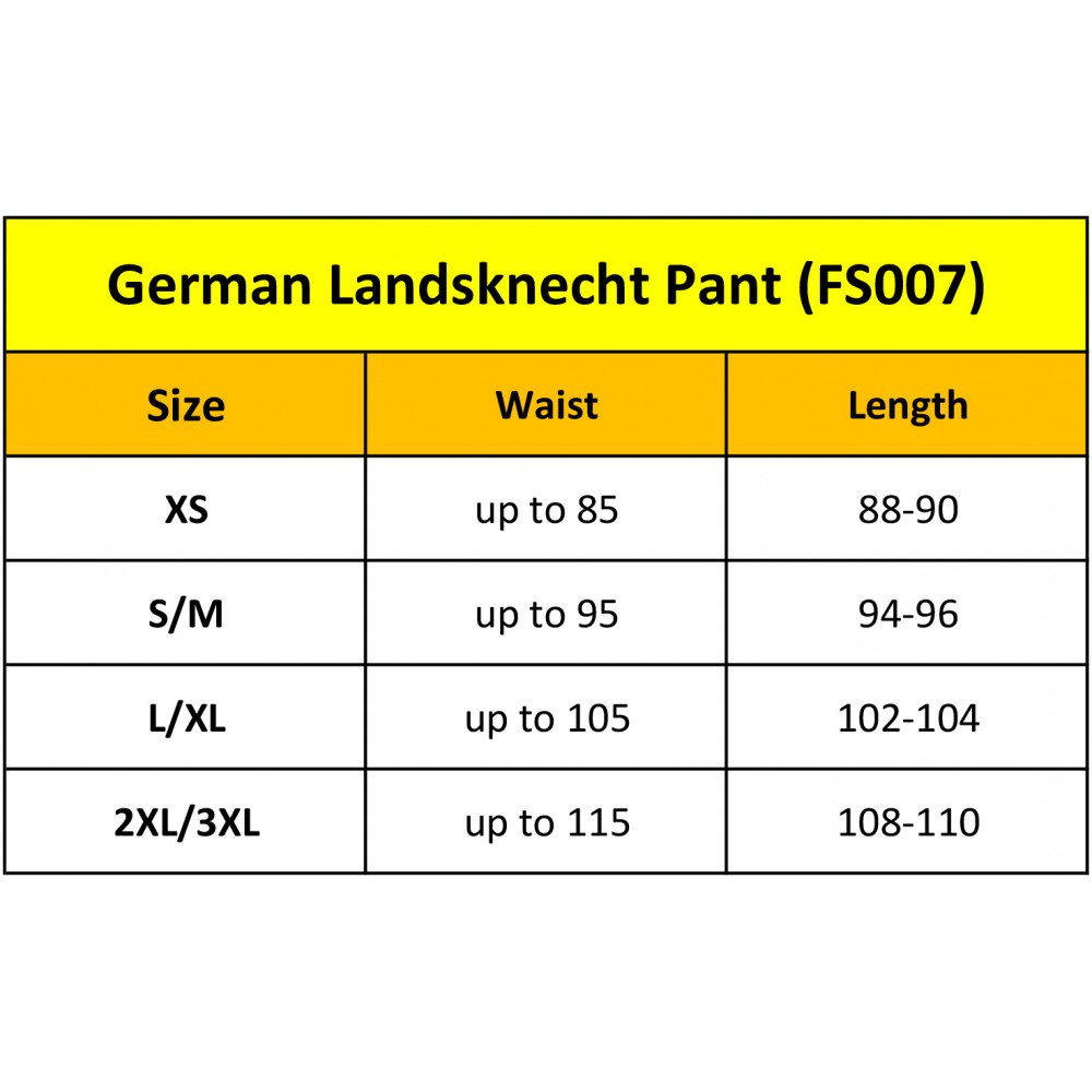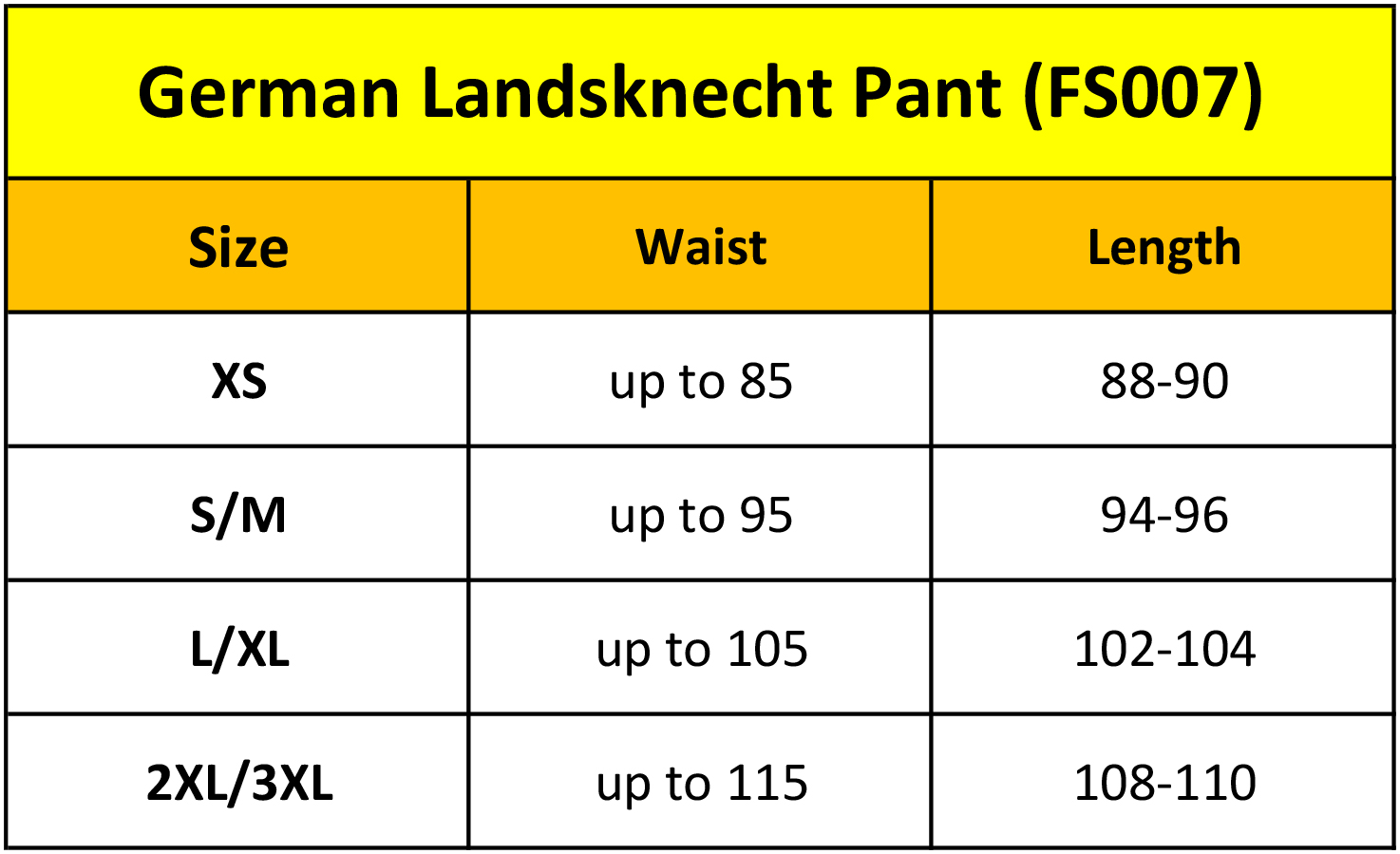 The word Landsknecht first appeared in the German language circa 1470 to describe certain troops in the army of Charles and Duke of Burgundy. The Germanic compound Landsknecht combination Land and Knecht to form “servant of the land”. German infantrymen were recruited by the Spanish in 1521 to fight the French. For close combat, the majority of Landsknecht carried a short sword known as a Katzbalger. Landsknecht suit has vertically color canvas stripes. Landsknecht trousers are fitted with a heavy cotton drawstring. All pants of Armor Arena have side pockets to keep your important items safe.