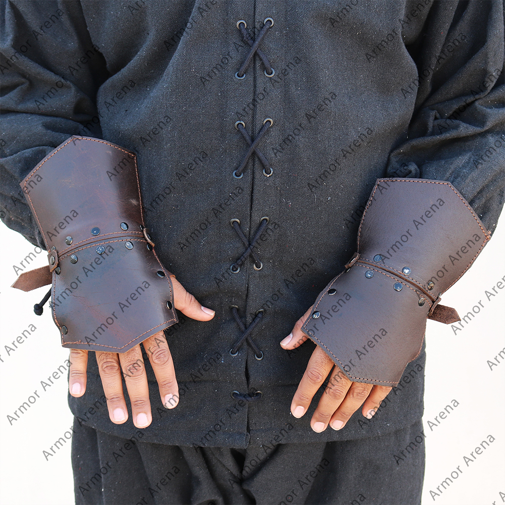Premium leather gauntlets are designed to protect hands from the fingers to Lower-arm area. Gauntlet is comfortable to wear with liberty of movement. Leather gauntlets were a type of armored glove used by soldiers and knights in Europe from the Middle Ages to the early modern period. They were made from leather or metal plates. Simple leather gloves were worn by soldiers and knights for basic hand protection in early Middle Ages. In 1300s, Chainmail gauntlets were worn by medieval soldiers and knights and armored gauntlets appeared in Europe in 1400s. Leather gauntlets also appeared in the American West as military uniform accessories.