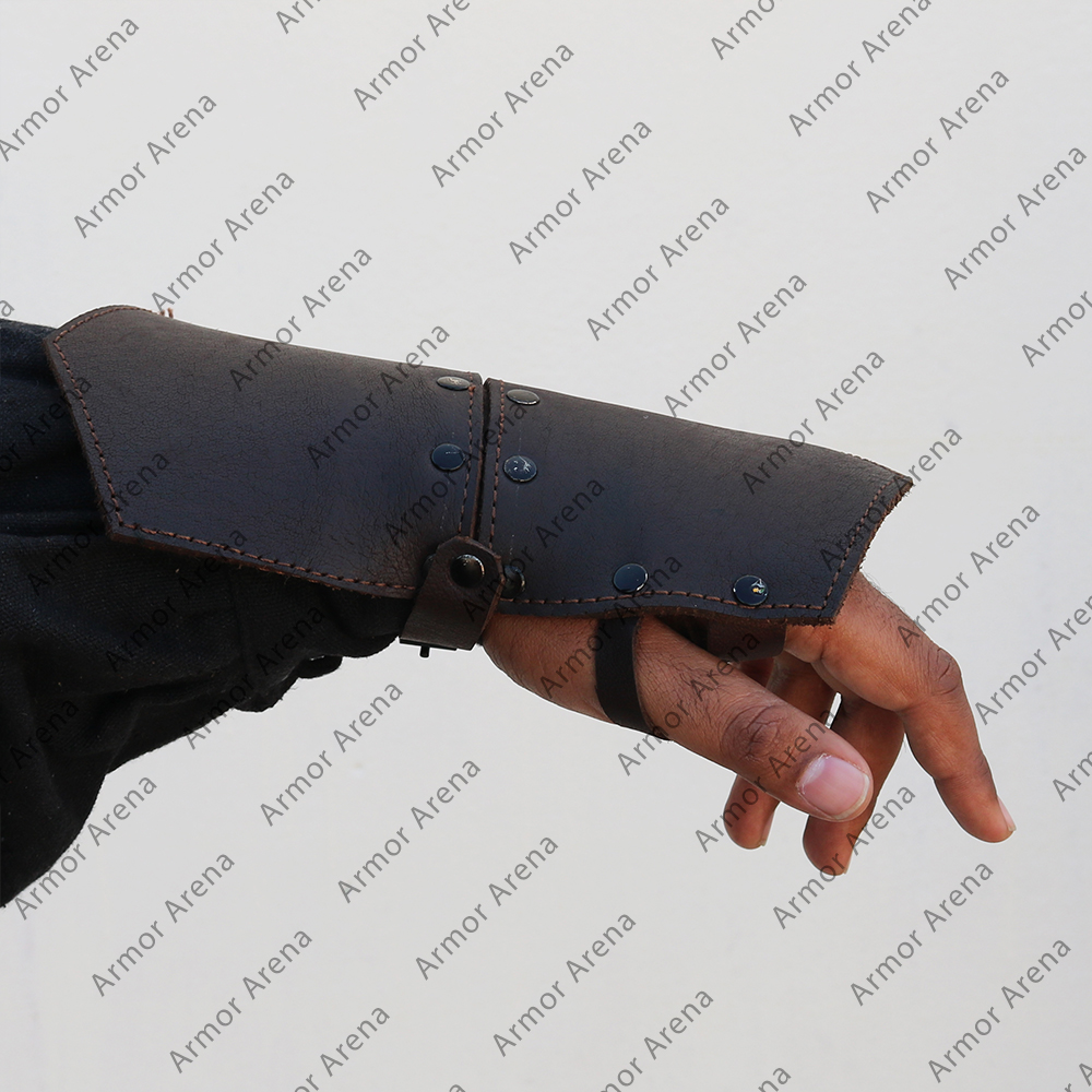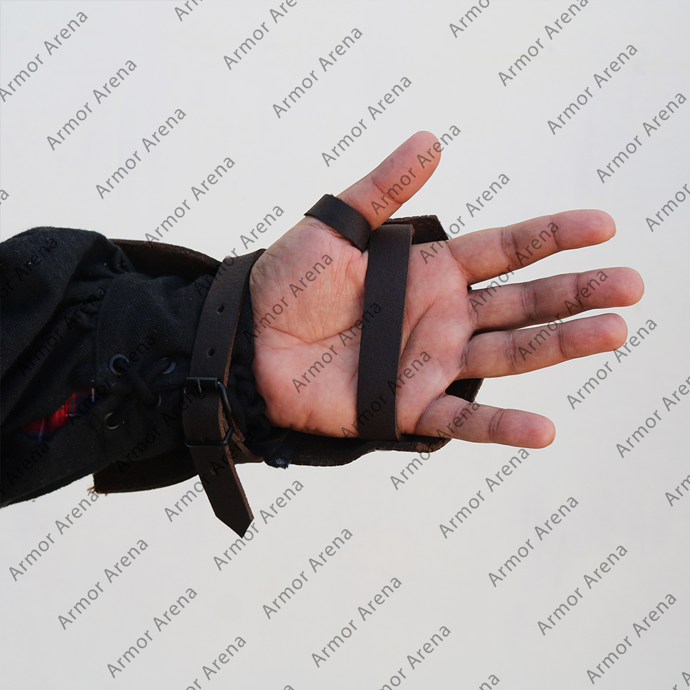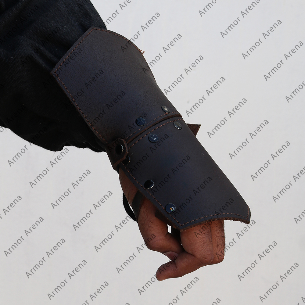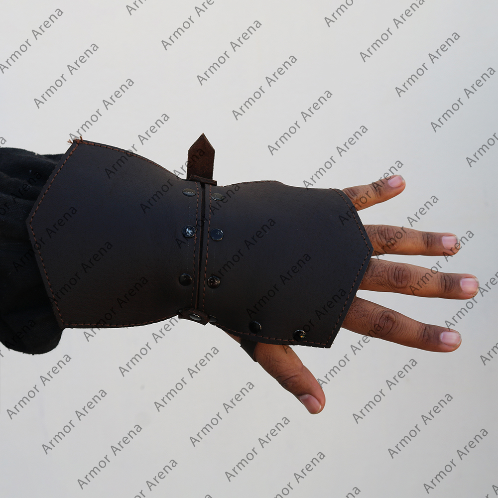The word "gauntlet" comes from the Old French word "gant" which means "glove". Medieval gauntlets were a strategic part of a soldier's defense in the Middle Ages. However, the need for gauntlets disappeared with the advent of firearms. The leather gauntlet is crafted from high quality upper leather which offering exceptional durability, flexibility and protection for combat, reenactments and training. Leather Viking gauntlet designed for both style and functionality which provides a secure fit while allowing dexterity for gripping weapons or shields. Viking leather gauntlets are available in 2 colors black and brown and this gauntlet complements a variety of medieval and fantasy armor sets. Combat leather gauntlet available in sizes ranging from S/M, L/XL, to 2XL/3XL which ensures a comfortable and secure fit for warriors of all hand sizes. Medieval leather gauntlets is a must have for any medieval enthusiast and perfect for historical reenactments, LARP, cosplay or collectors.