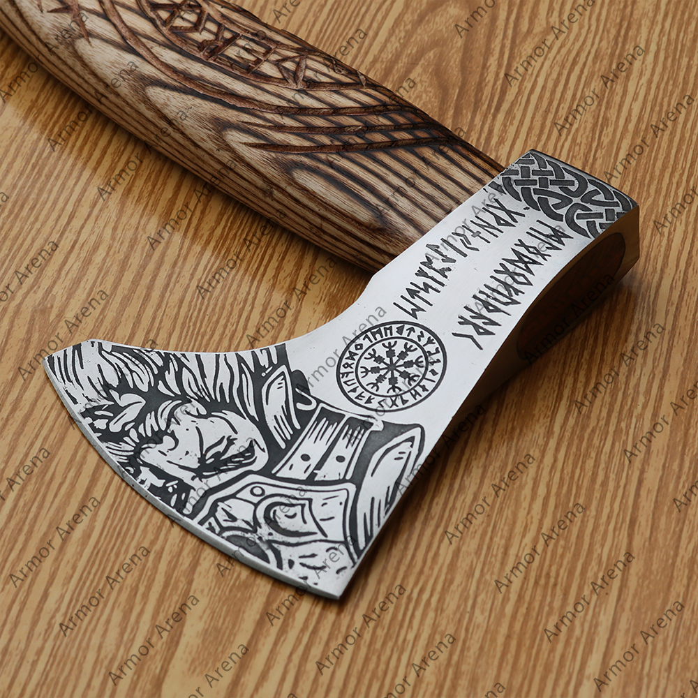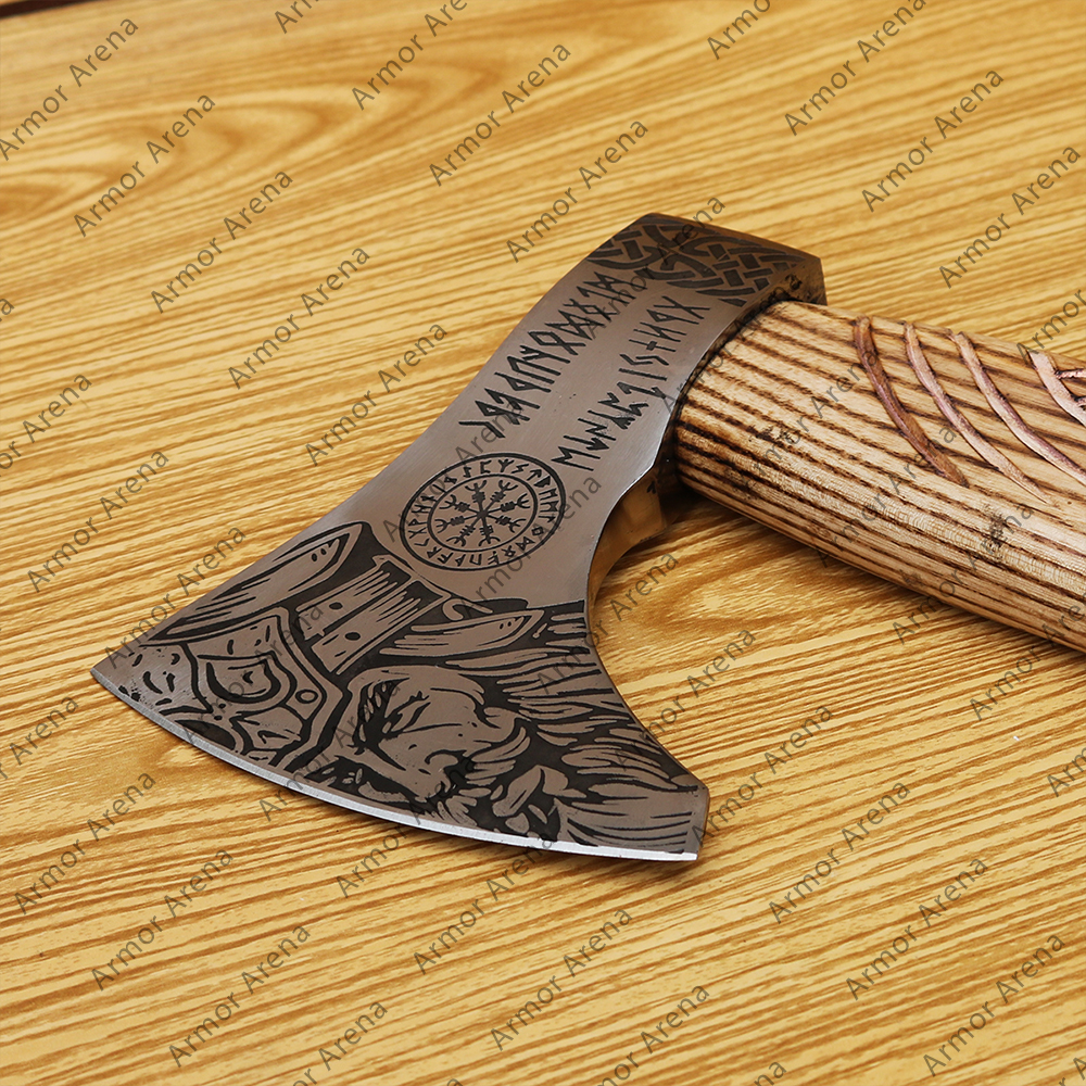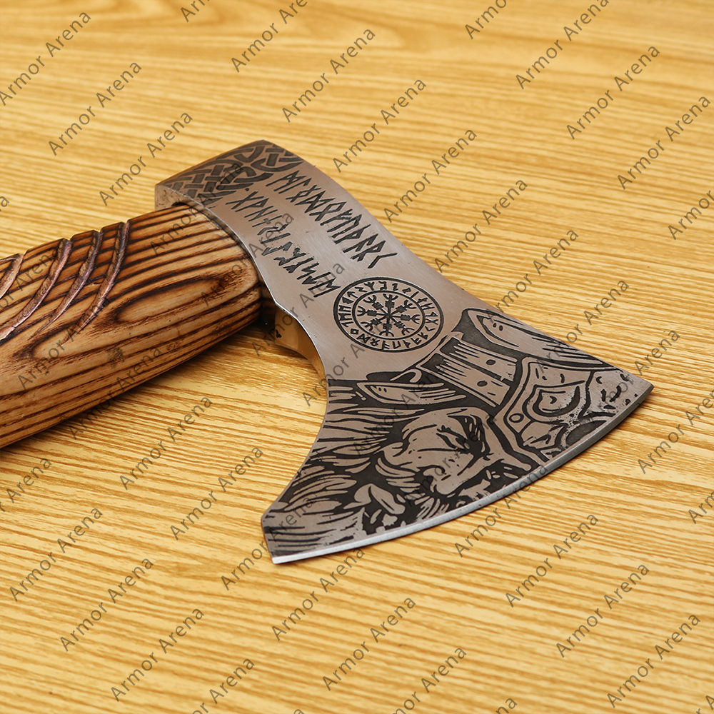 We have many Hand Forged custom made Axe with leather scabbard and wooden handle. Steel head is oiled to avoid rush. Our all axes and knives are practical. The wood combined with strength, feel and textured. The wood is selected carefully not for its texture, but also for the location of the wood so that the axe handle is not only harmoniously looked but also strong enough. Our axes are sharp and battle ready. The axe is suitable for cutting wood, hatchet firewood, etc. Things don’t end here as axes have sturdiness, shiny appearance, personalized look & feel, sharpness, along with speedy delivery. Everything hit the mark.