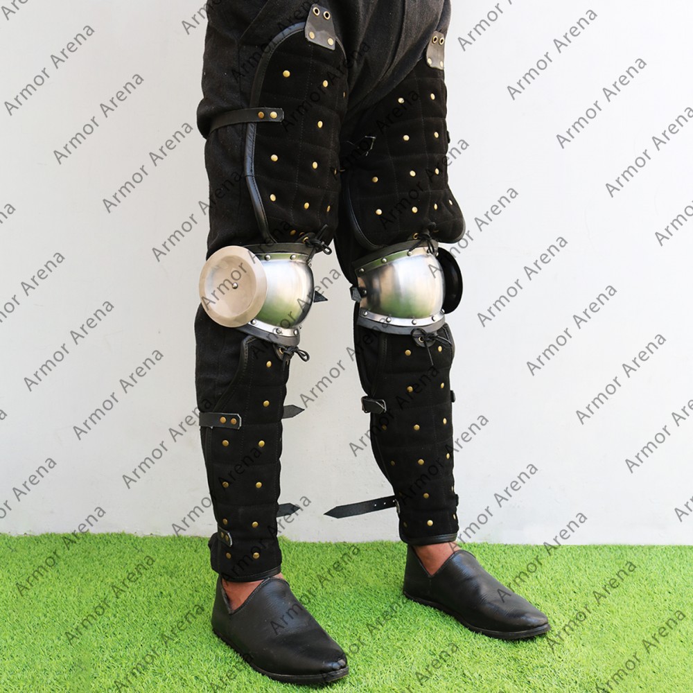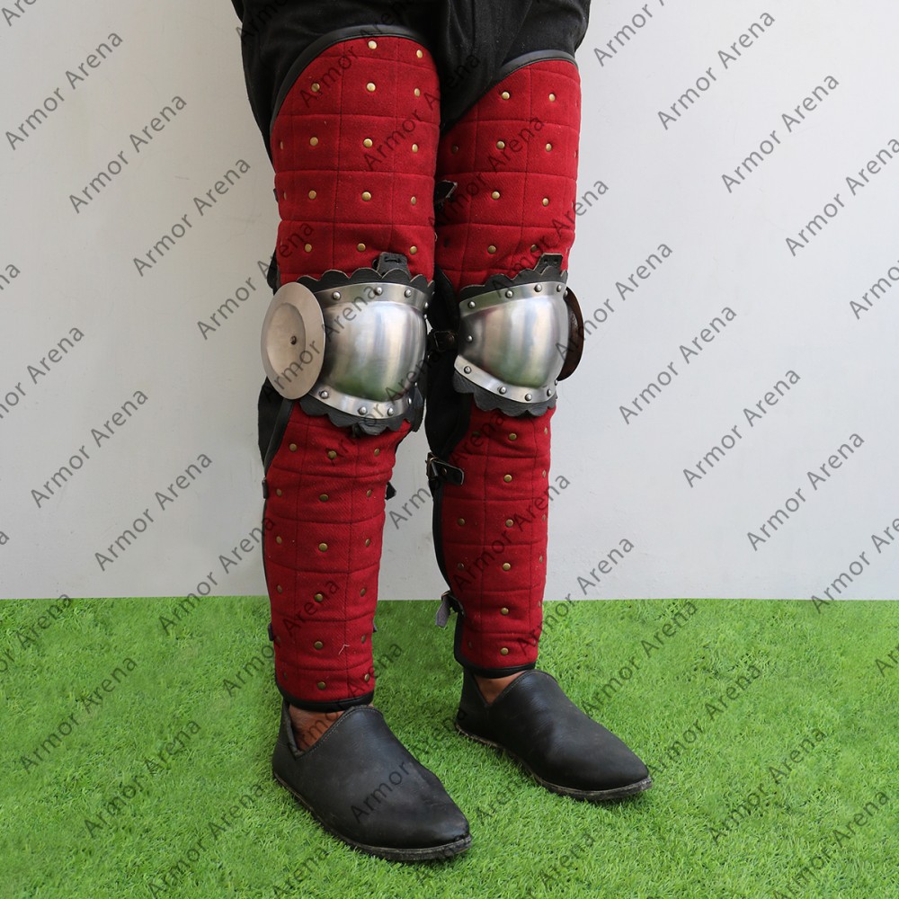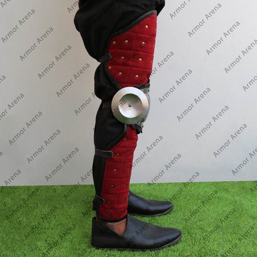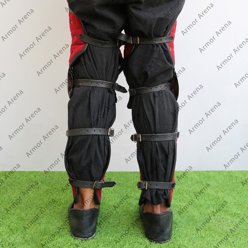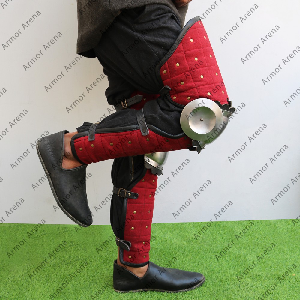 Woolen leg armor reinforced with Steel Strips is suitable for the Viking Age and Slavic re-enactment. wool leg armor can be used for Sword fighting in all medieval and historical fairs. Untreated steel is used and may have rust. Use oil to protect steel from rust. Viking warriors wear these Viking wool leg armor in the battlefield for protection. These tough and reliable greaves are perfect for battle practice, LARP events and Viking reenactments. These Norse wool armor built to protect your shin and give you both safety and freedom to move.