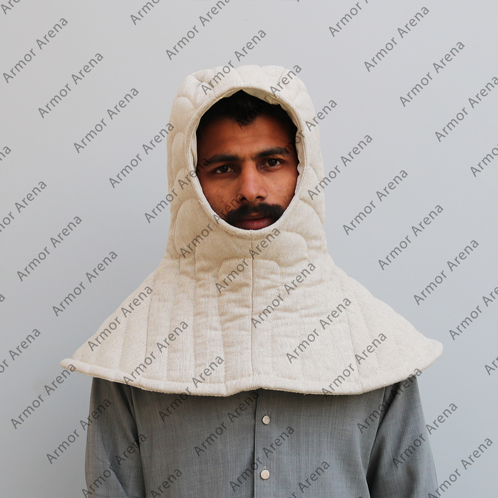 Quilted hoods have a long history dating back to medieval times. Their presence in this period is confirmed by sources including manuscripts. Quilted hoods are headgears which are characterized by an additional layer of material or filling, stitched in regular patterns to create a quilted effect. In the Middle Ages, quilted hoods were popular mainly among knights because they provided additional protection during combat and were comfortable to wear under a helmet or armor. Gambeson hoods/caps are often reconstructed by medieval enthusiasts to recreate the authentic appearance and functionality of medieval clothing.