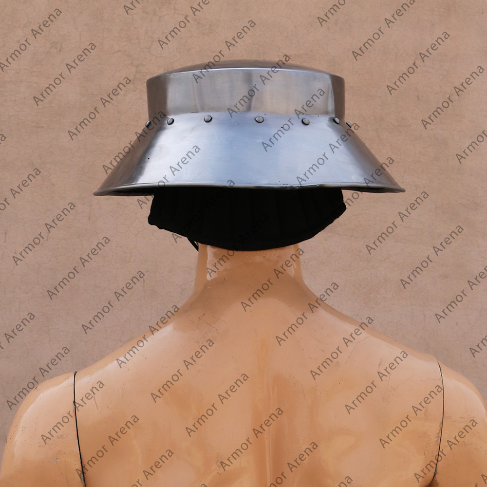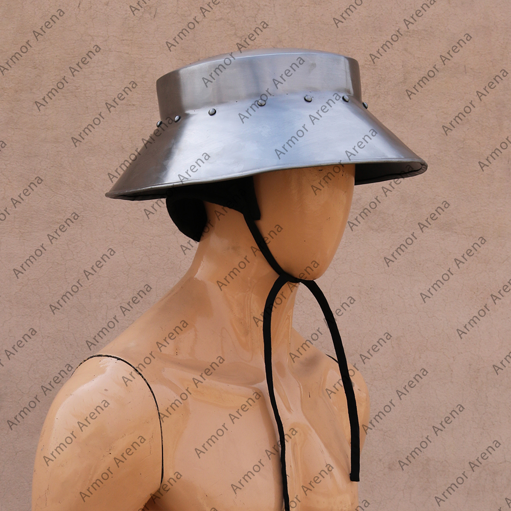 This middle ages soldier hat crafted from mild steel and are available in a variety of gauges which includes 20G, 18G, 16G, and 14G. Customer are allowed to choose the strength and weight that suits your needs. Customers can also select between a dull finish or a mirror polish according to the taste and requirement. This medieval hat made to use in LARP, historical events, character portrayal or as collectors items. We offer a guaranteed lowest price to ensuring excellent value for money. The soldier hat is the best way to add something absolutely original to the collection of medieval antiques.